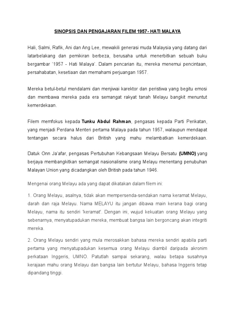 Perintis Sinopsis 1957 Hati Malaya