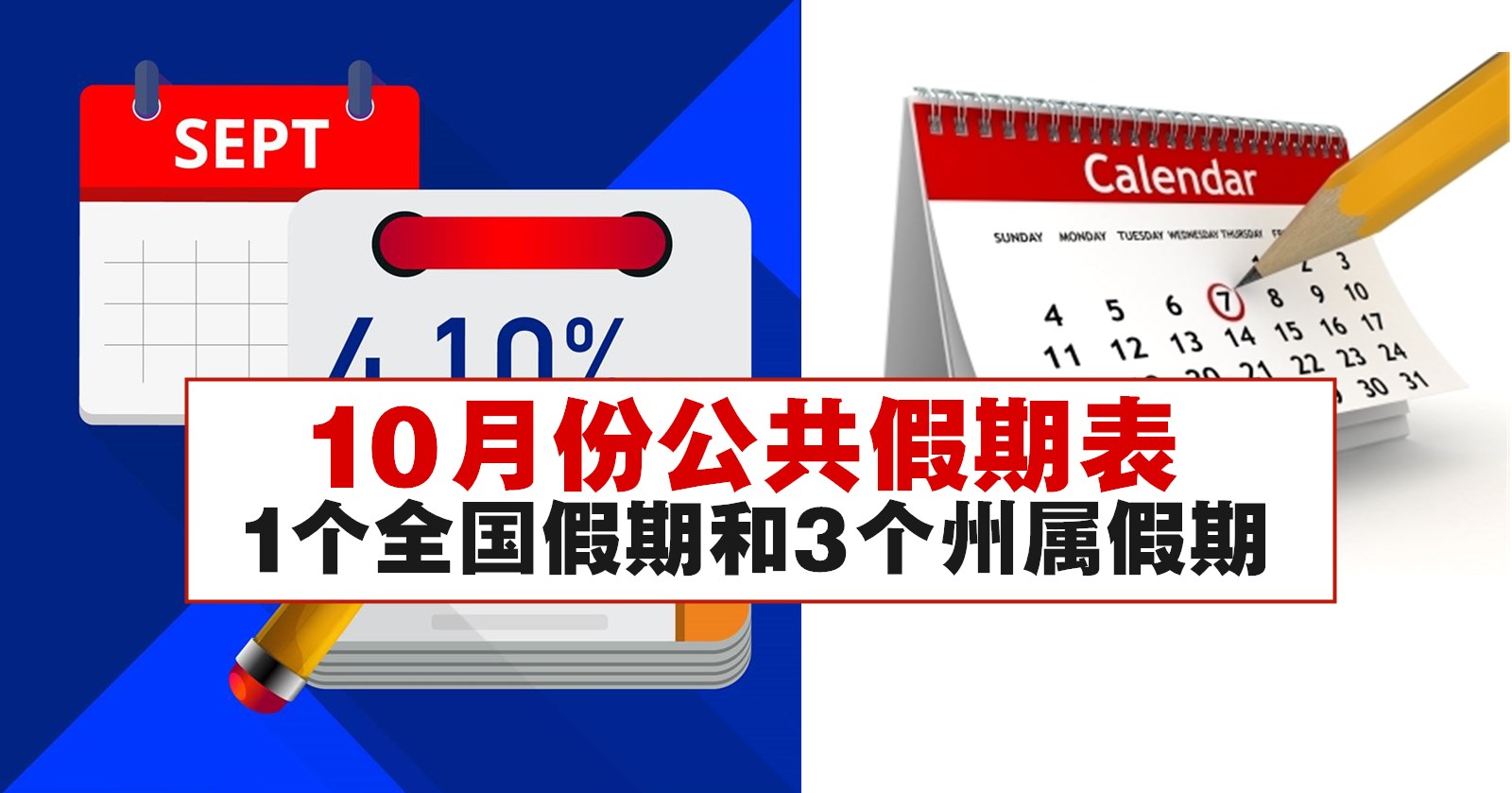10月份公共假期表 1个全国假期和3个州属假期 Winrayland