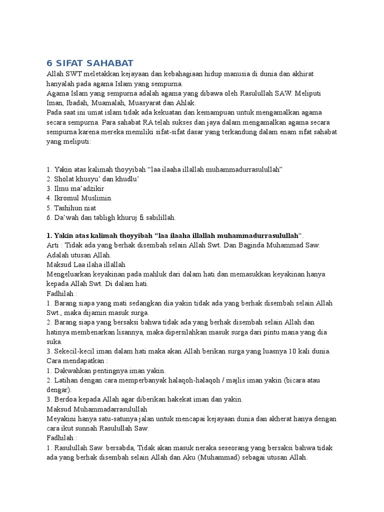 Doc Muzakarah 6 Sifat Sahabat Muaz Nahar Academia Edu