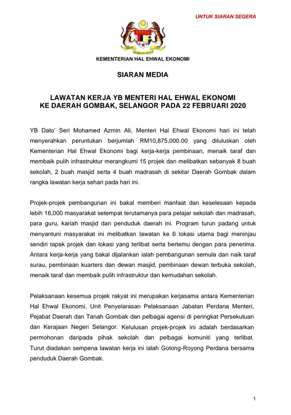 Unit Perancang Ekonomi Laman Rasmi On Twitter Siaran Media Lawatan Kerja Yb Menteri Hal Ehwal Ekonomi Ke Daerah Gombak Selangor Pada 22 Februari 2020 Meamalaysia Https T Co Thy20dxouv