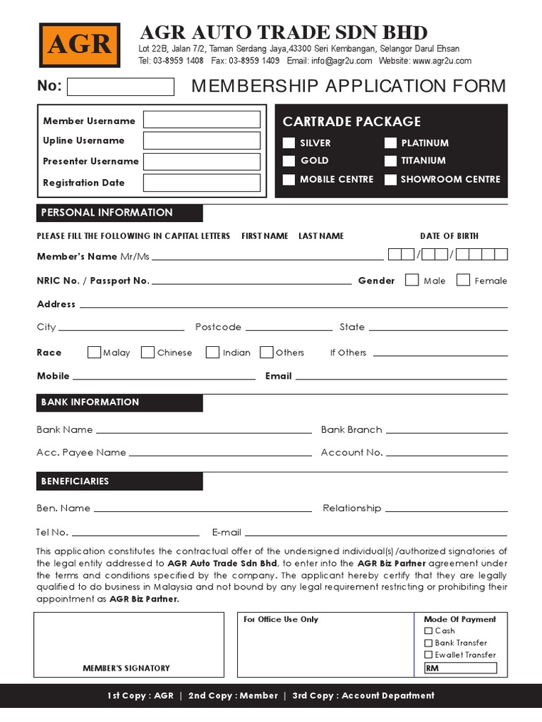 Agr Registration Form Business