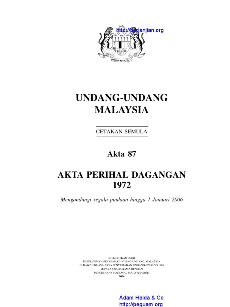 Akta 87 akta perihal dagangan 1972 pdf. Akta 87 akta perihal dagangan 1972 dimansuhkan oleh akta perihal dagangan 2011 akta 730 title. Use false trade description on goods.
