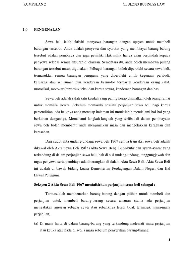 Seksyen 16 Akta Sewa Beli Pindaan 2010 Docx Glul 2023 Undang Undang Perniagaan 1 0 Pengenalan Sewa Beli Ialah Aktiviti Menyewa Barangan Dengan Opsyen Course Hero