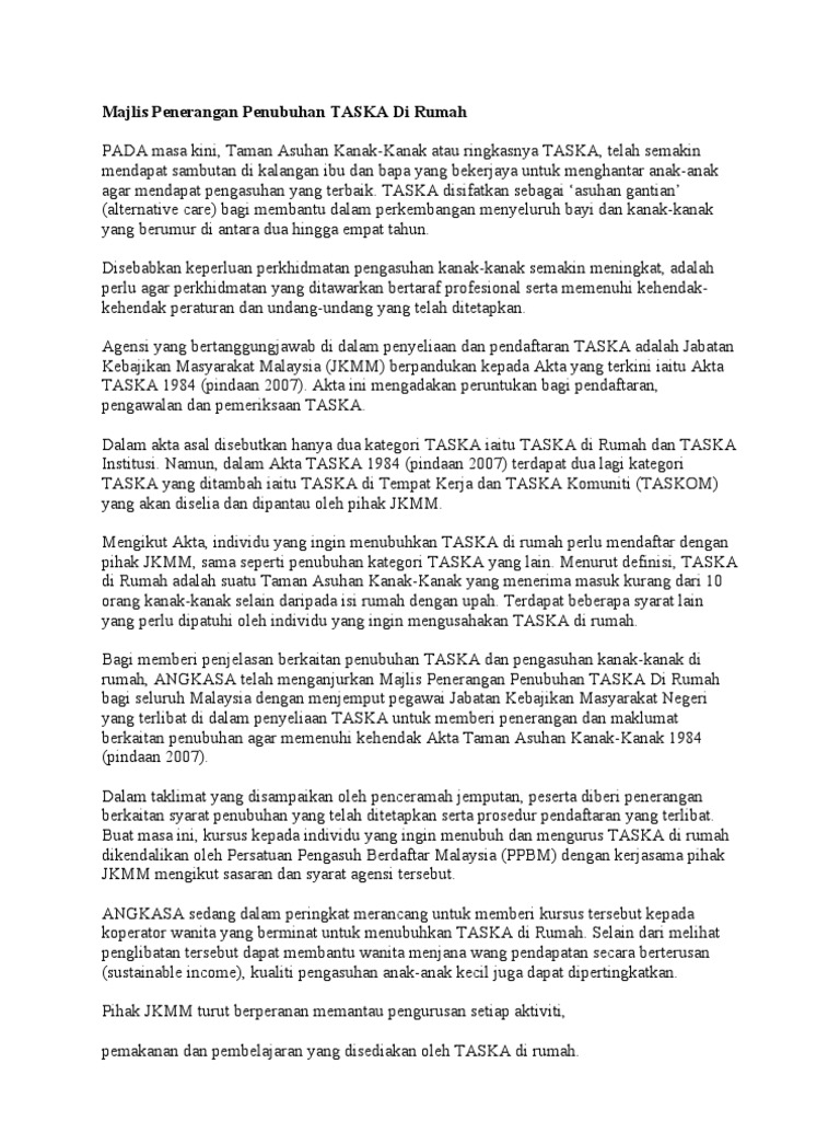 Akta Taman Asuhan Kanak Kanak 1984 Archives Tvet Jpk Sijil Kemahiran Malaysia Vto Noss Urise