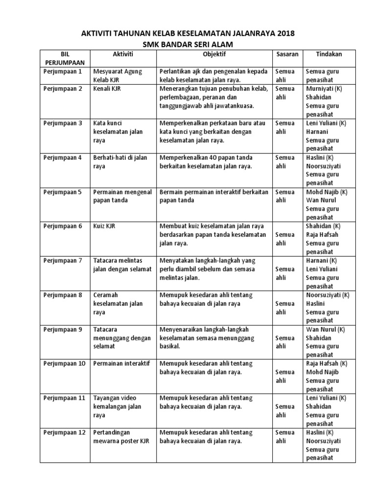 Rpt Kelab Keselamatan Jalan Raya Doc