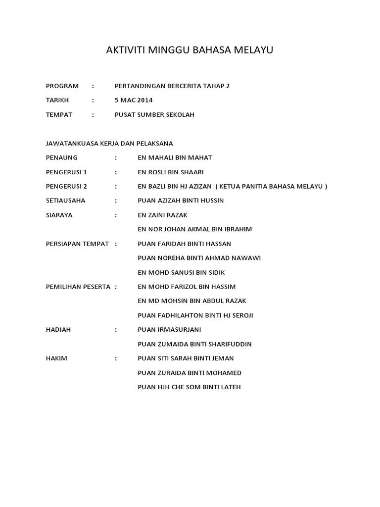 Contoh Aktiviti Minggu Bahasa Melayu Panitia Bm