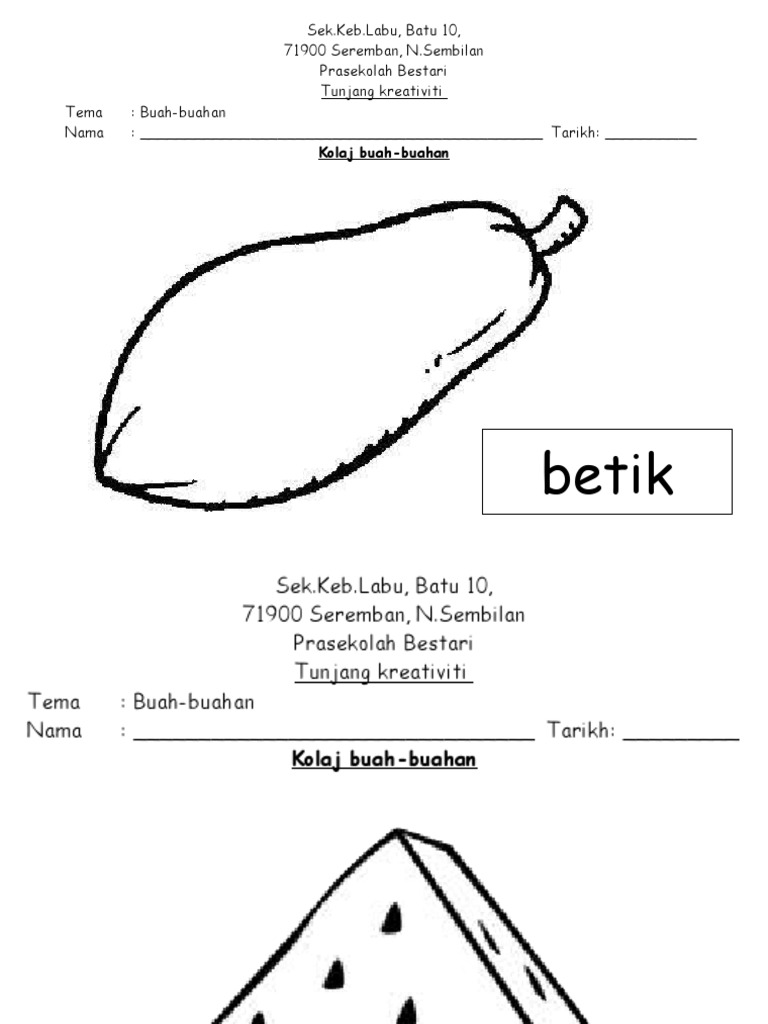Bahasa Malaysia Prasekolah Latihan Buah Buahan School Kids Activities Preschool Worksheets Kids School