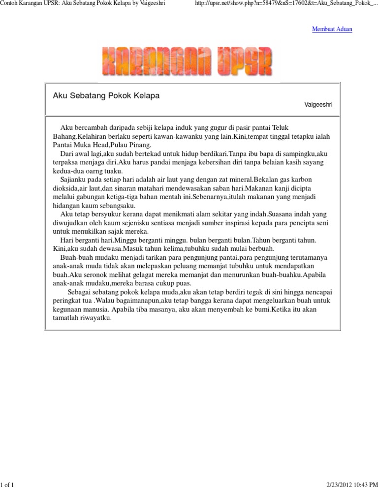 Contoh Karangan Upsr Aku Sebatang Pokok Kelapa By Vaigeeshri Pdf Document