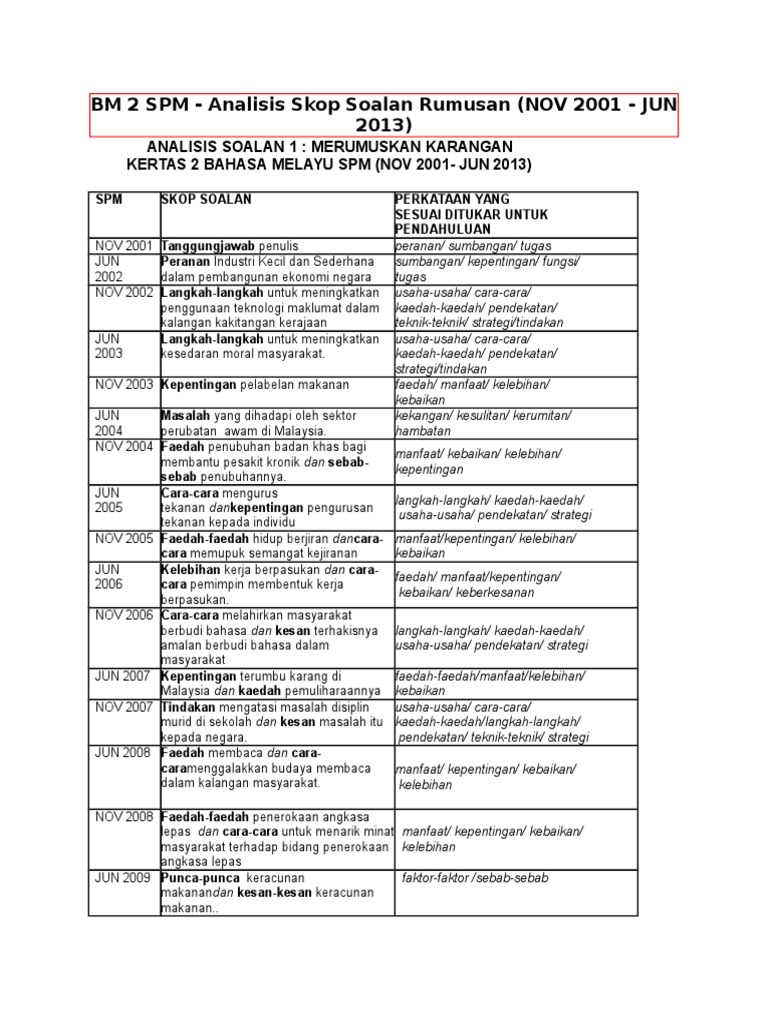 Analisis Soalan Spm Sebenar Rumusan Bm 2 Spm