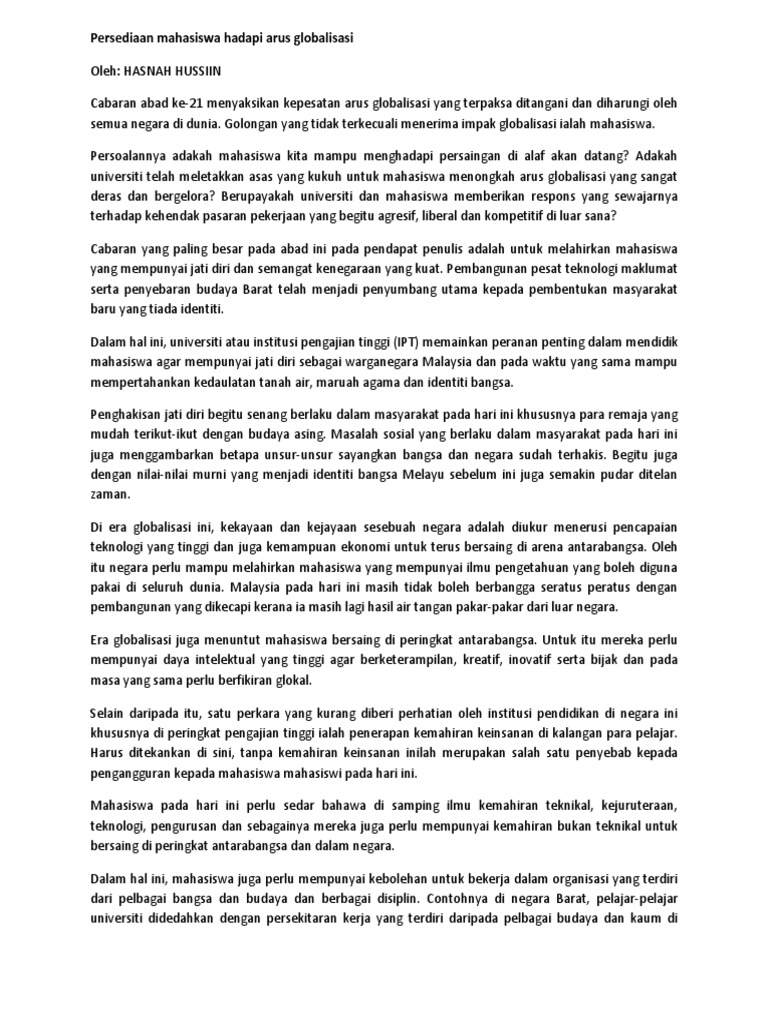 Persediaan Mahasiswa Hadapi Arus Globalisasi