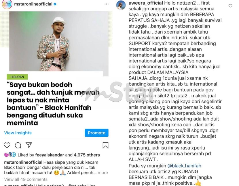 Makcik Jual Goreng Pisang Lagi Kaya Daripada Segelintir Artis Malaysia Aweera Sokong Cadangan Black Anak Seni Perlu Dibantu Hiburan Mstar