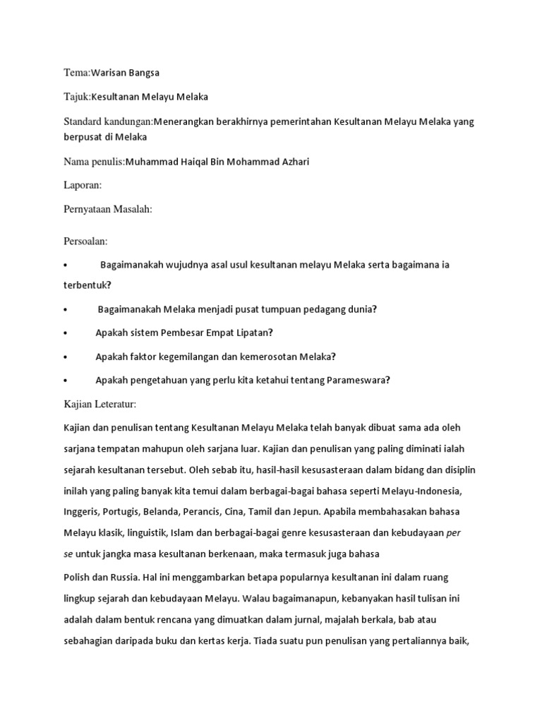 Doc Kesultanan Melayu Melaka Muhammad Zarrin Academia Edu
