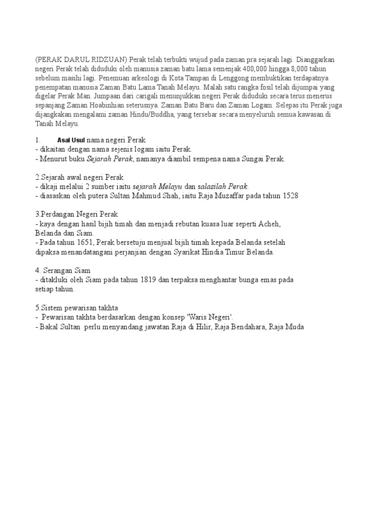 Asal Usul Nama Negeri Perak Docx Document