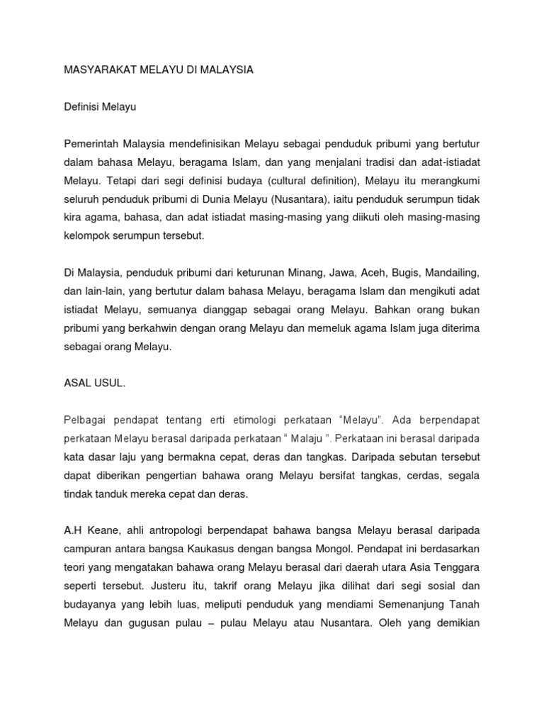 Ciri Adat Bahasa Dan Agama Orang Melayu Asal Usul Orang Melayu