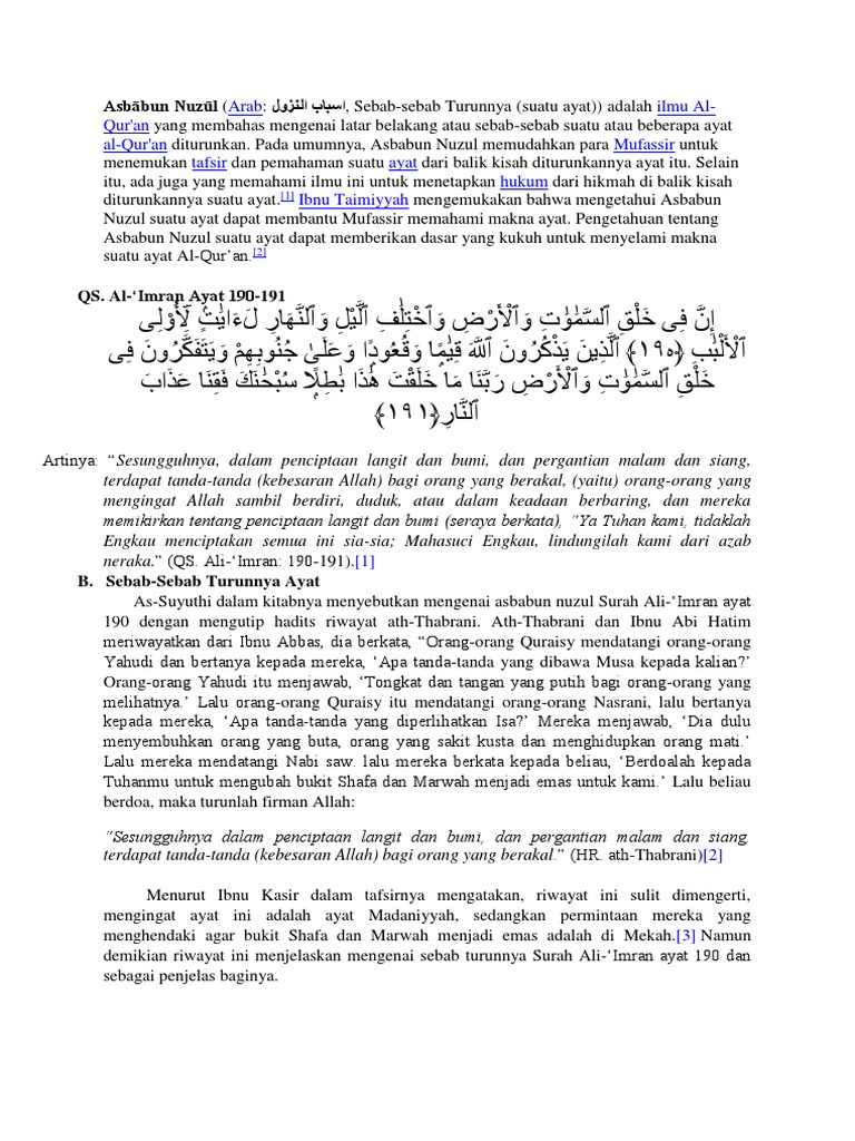 Jelaskan Asbabun Nuzul Surah Ali Imran Ayat 190 191 Secara Singkat Yah Brainly Co Id
