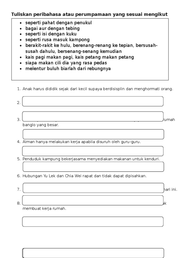 Latihan Peribahasa Spm Dinyatakan Di Bawah A Membina Ayat Daripada Peribahasa