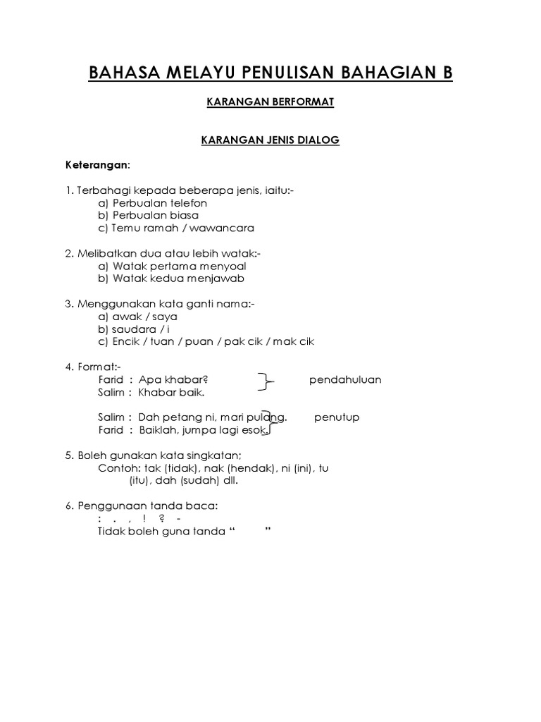 Karangan Dialog Pt3 Bahasa Melayu Contoh Terbaik
