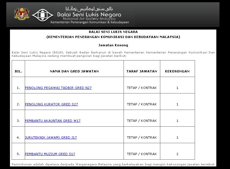 Jawatan Kosong Balai Seni Negara 12 Mei 2017 Jawatan Kosong Kerajaan Swasta Terkini Malaysia 2020 2021