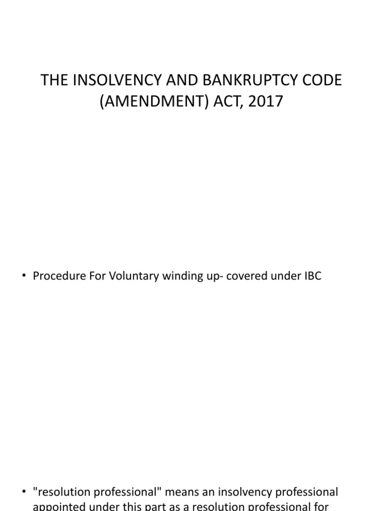 The Insolvency And Bankruptcy Code Amendment Act 2017 Liquidation Bankruptcy