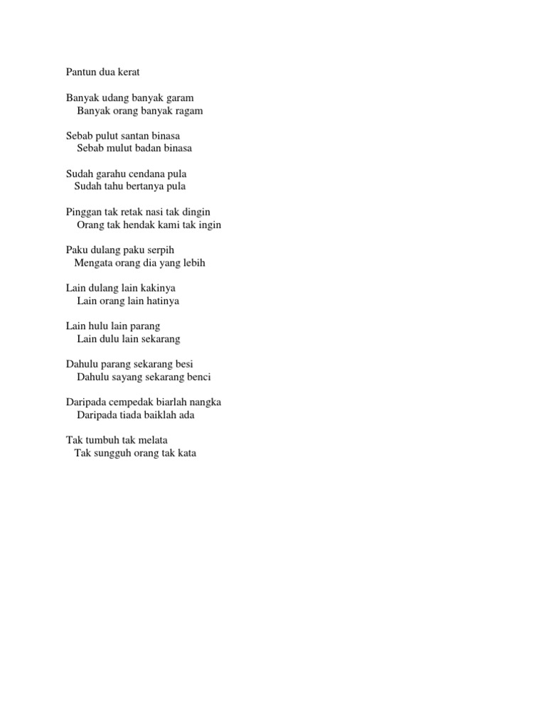 Banyak Udang Banyak Garam Banyak Orang Banyak Ragam Jenis Pantun Di Atas Adalah