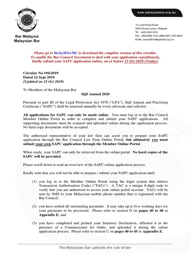 Malaysian Bar 2019 Sijil Annual Application Click Facebook