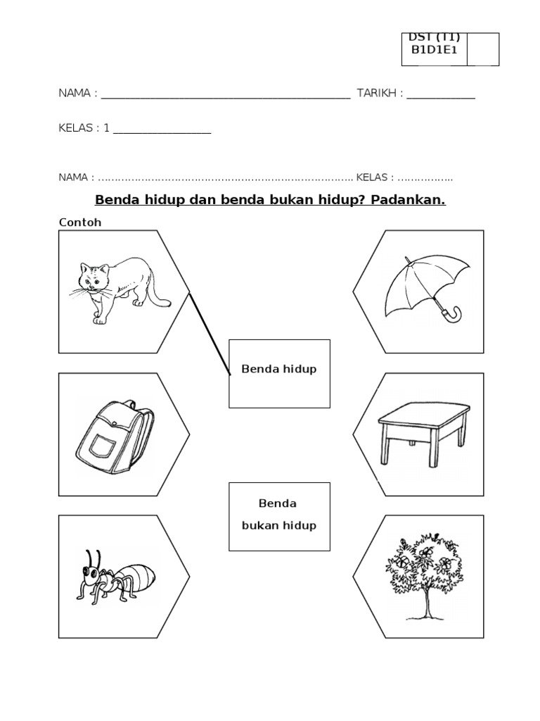 Benda Hidup Dan Benda Bukan Hidup Padankan Nama Tarikh Kelas 1