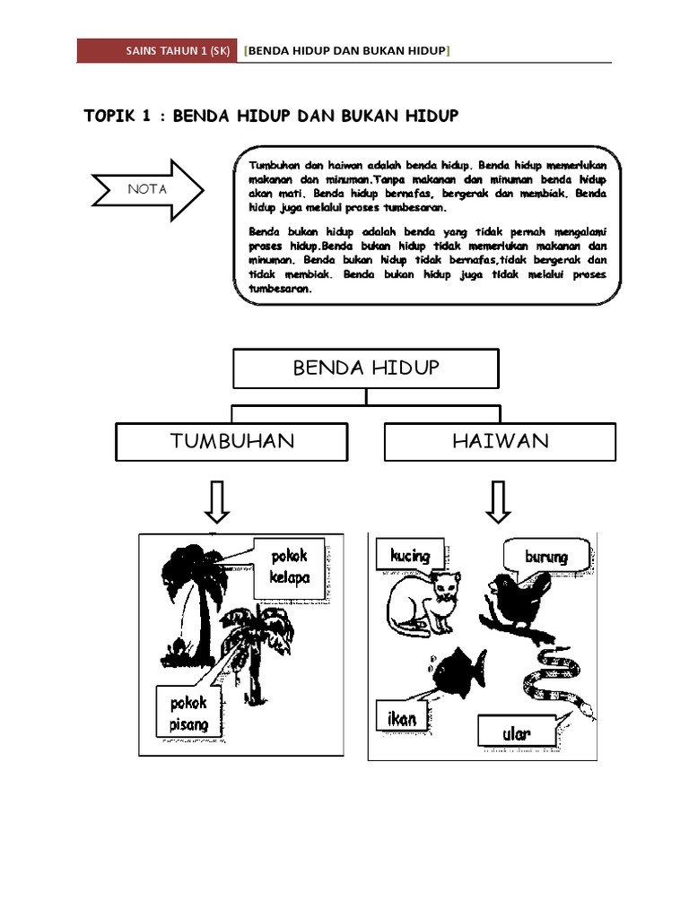 Sains Tahun 1 Sk Benda Hidup Dan Bukan Hidup