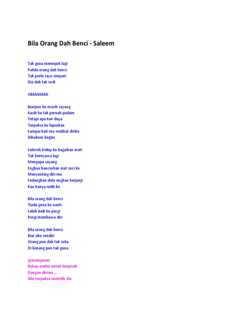 Saleem Bila Orang Dah Benci Lyrics Lyrics My