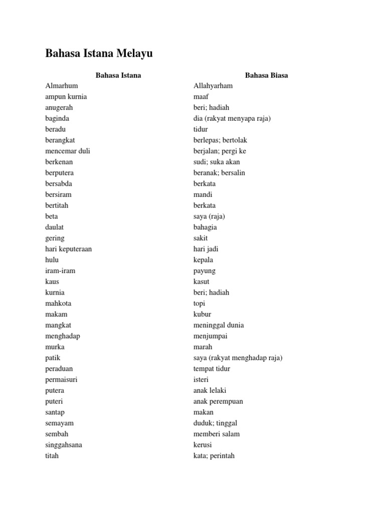 Contoh Bahasa Istana Senarai Ayat Terbaik Pt3