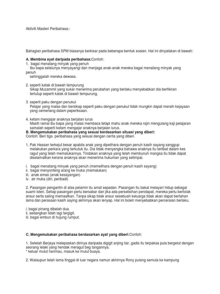 Latihan Peribahasa Spm Dinyatakan Di Bawah A Membina Ayat Daripada Peribahasa