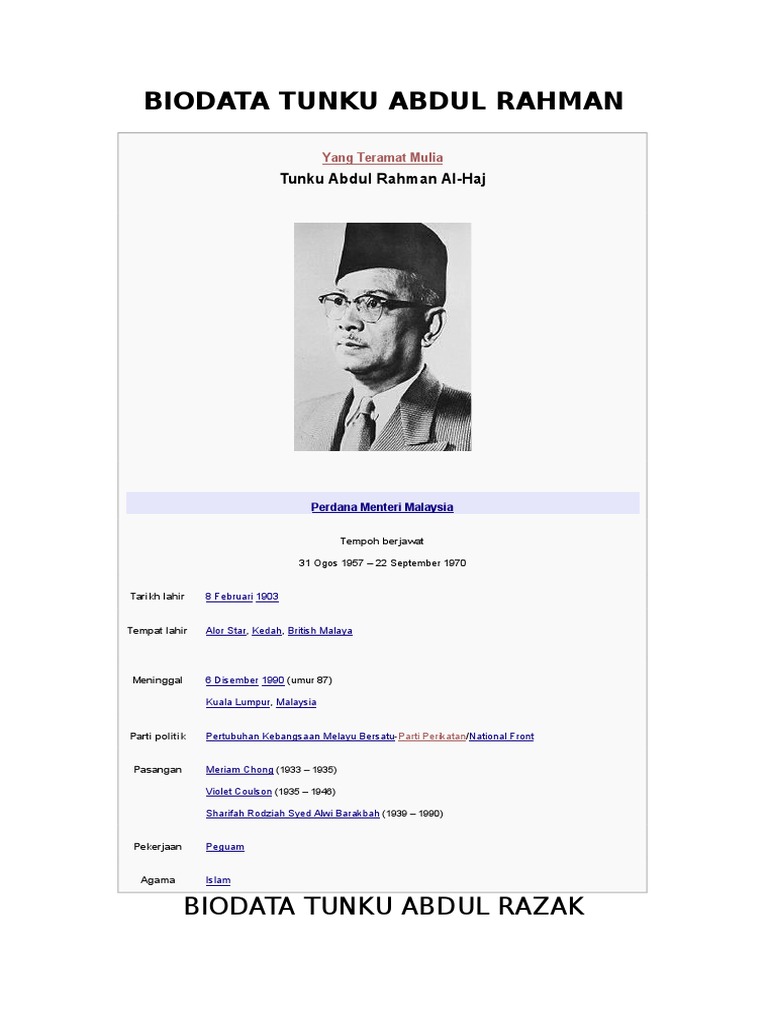 Doc Biodata Tokoh Tunku Abdul Rahman Rozie Zor Academia Edu