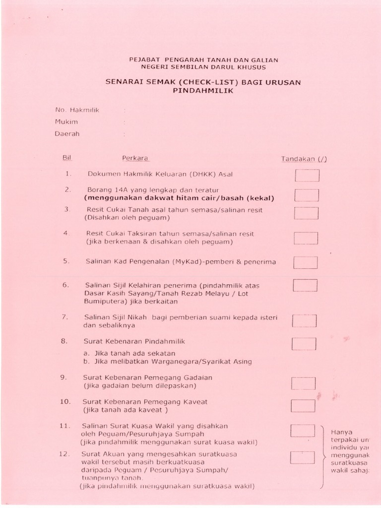Checklist Pindah Milik Tanah