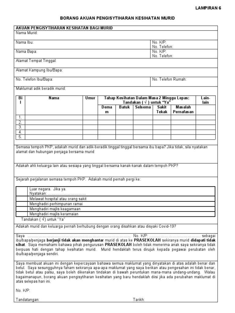 Borang Akuan Pengisytiharan Kesihatan Rimbun Kasih Enrichment Centre Rkec Facebook