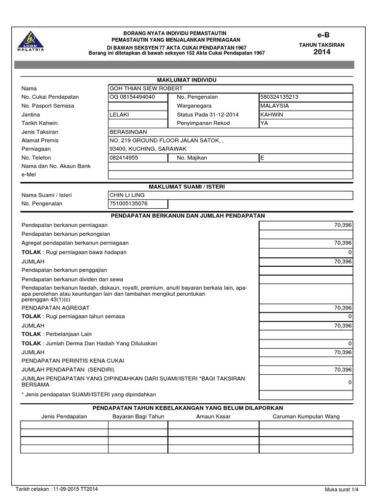 Borang B Atau Be Bagaimana Mengisi Borang Cukai Individu Pendapatan Bahagian 1 Borang Be Pepitih