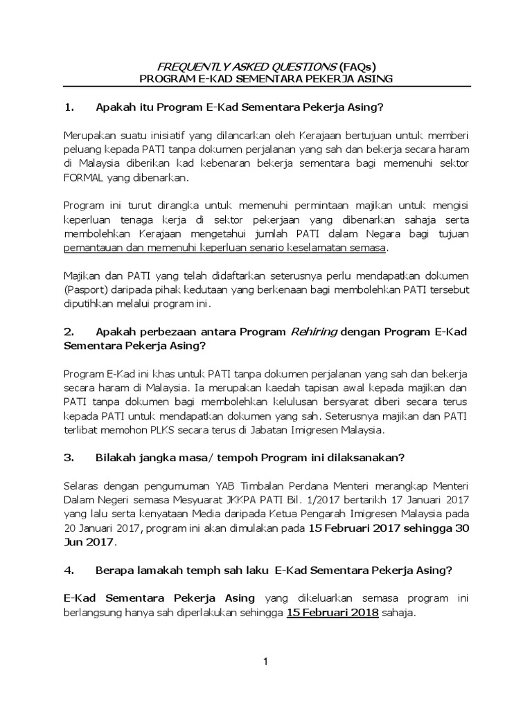 Program E Kad Sementara Pekerja Asing Jabatan Imigresen Malaysia Facebook